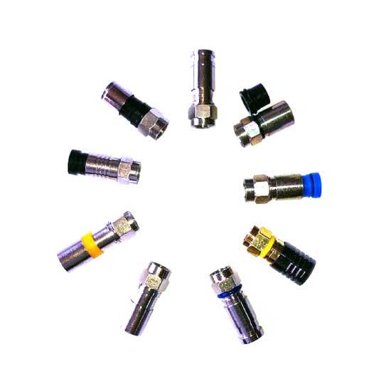 Featured here is a series of F connectors designed for TVs and antennas. It come in a compact cylindrical shape and has an insulated housing for safe use. The F connectors have colored rings for easy identification and delivers high stability and reliability.