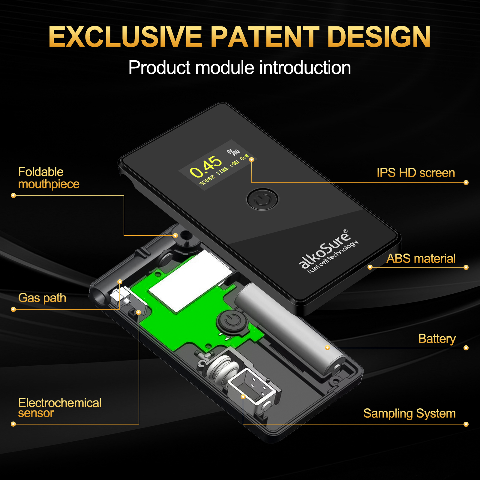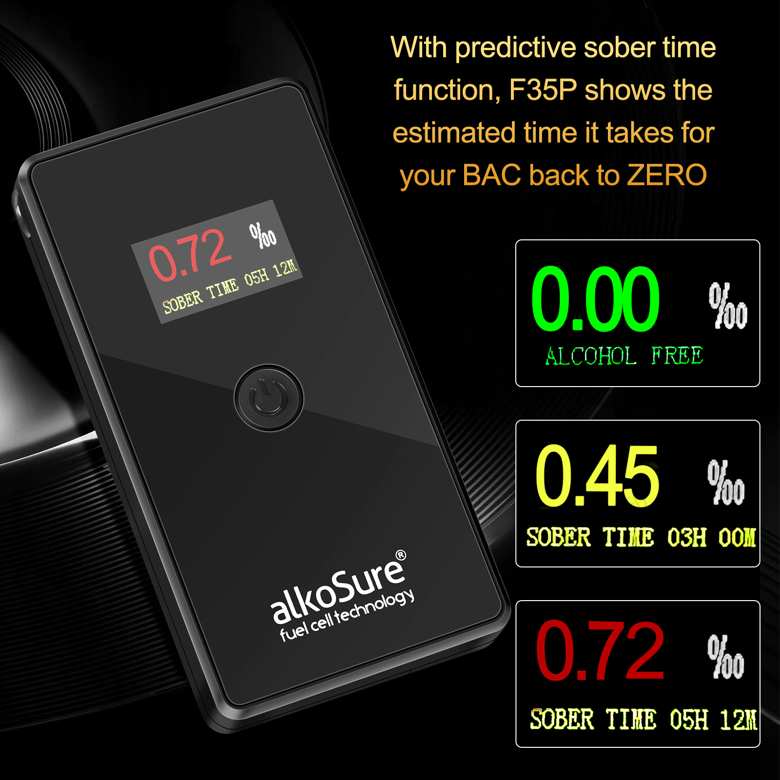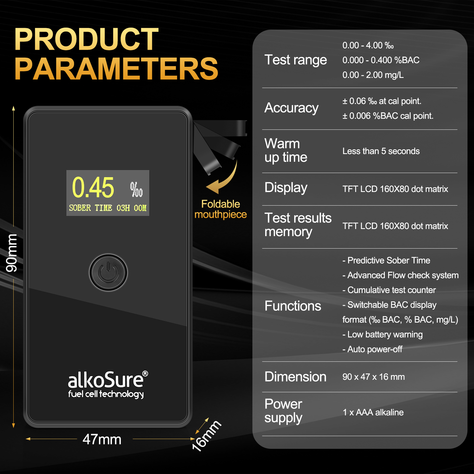 • Switchable BAC display format(‰ BAC, % BAC, mg/L)