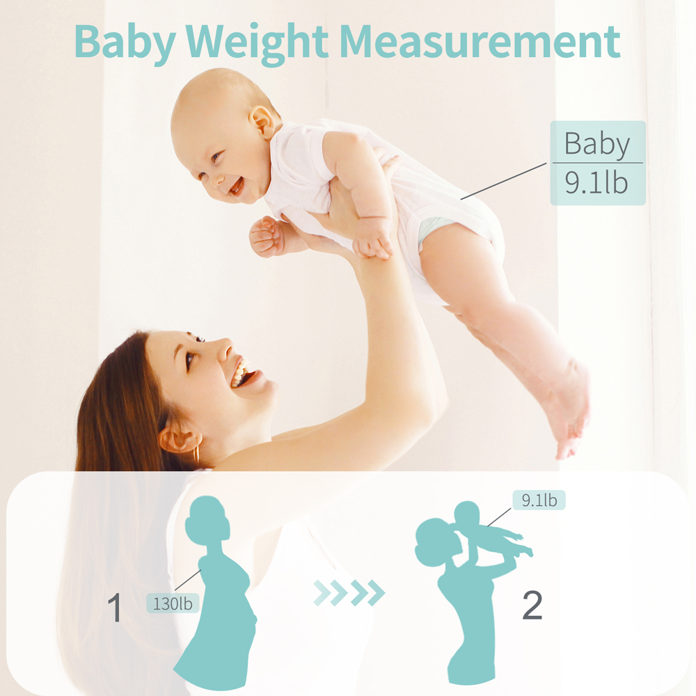 A reliable weighing scale is a great choice to accompany the growth of your baby. Open Holding baby mode, weigh adult first, and hold your baby in hand to weight. Then the App screen will show the baby's weight.(Note: Baby mode can only measure baby weght. Body composition measurement only for people above the age of 16).
