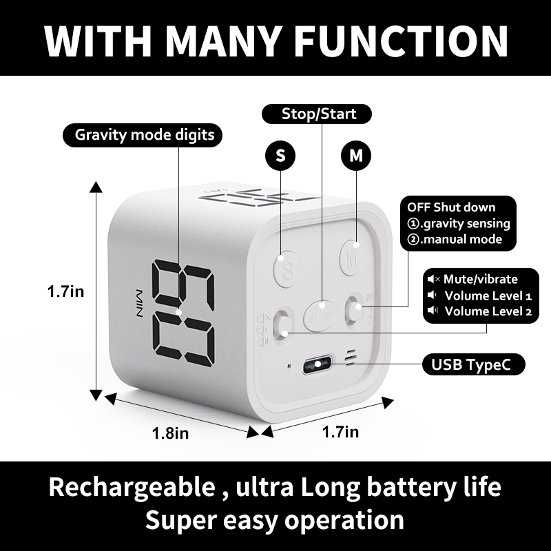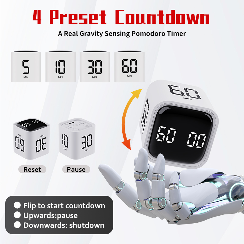 Gravity Flip Cube Design: Simply flip the cube to different sides to activate various countdown settings. Fun, intuitive, and easy to operate.