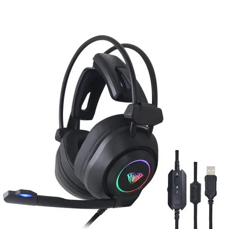 RGB lights low latency wired gaming headsets headphones with HD call and stereo sound