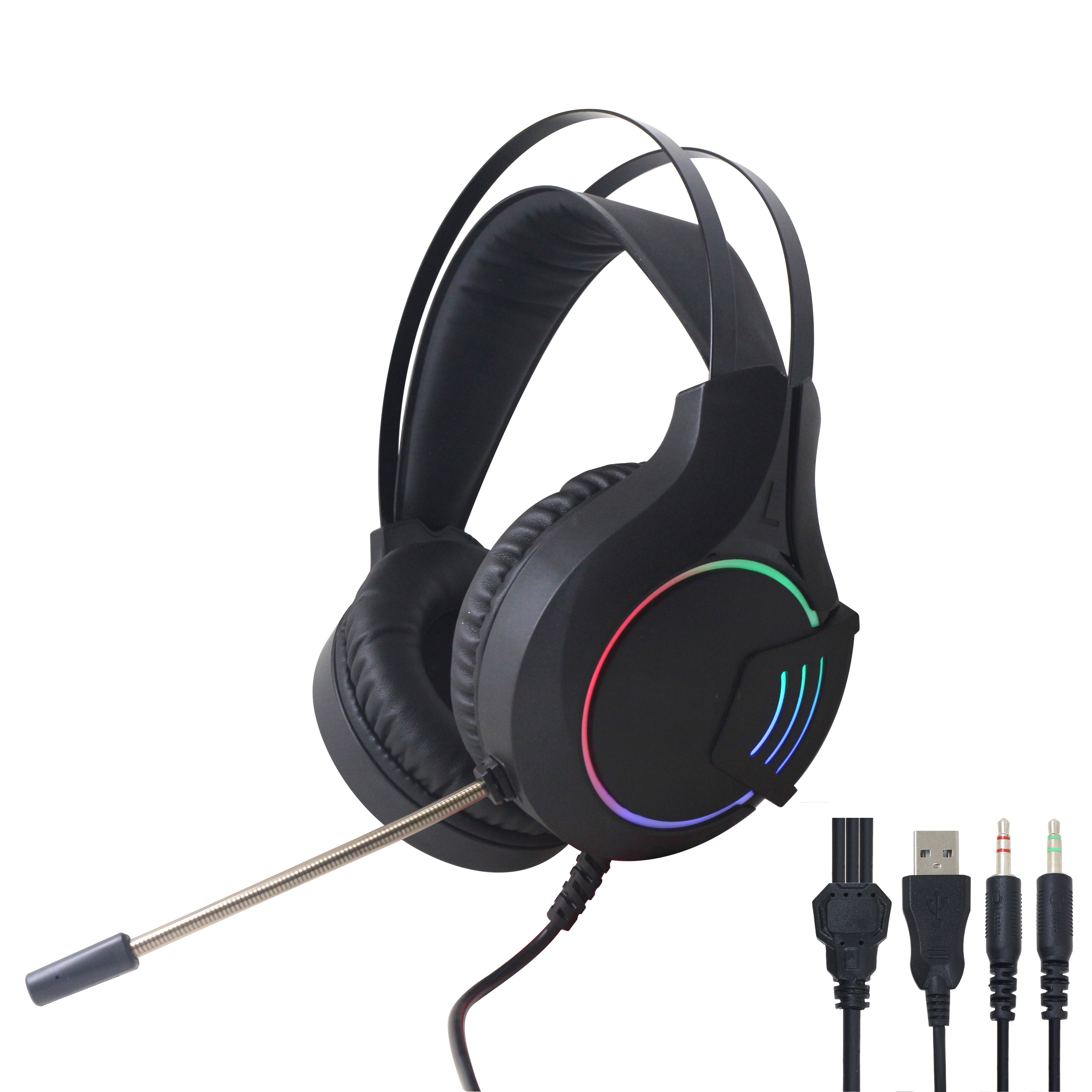 RGB lights low latency wired gaming headsets headphones with HD call and stereo sound