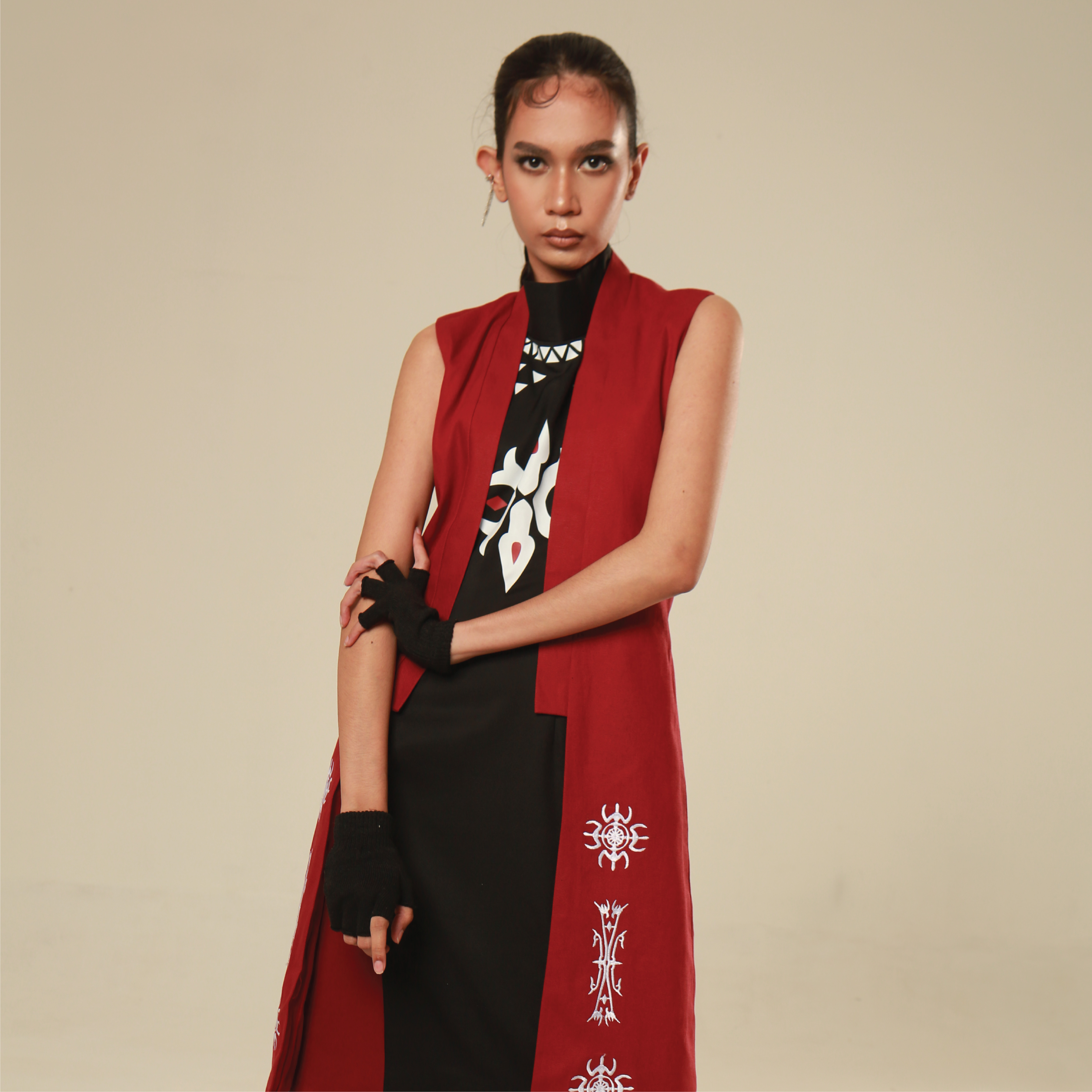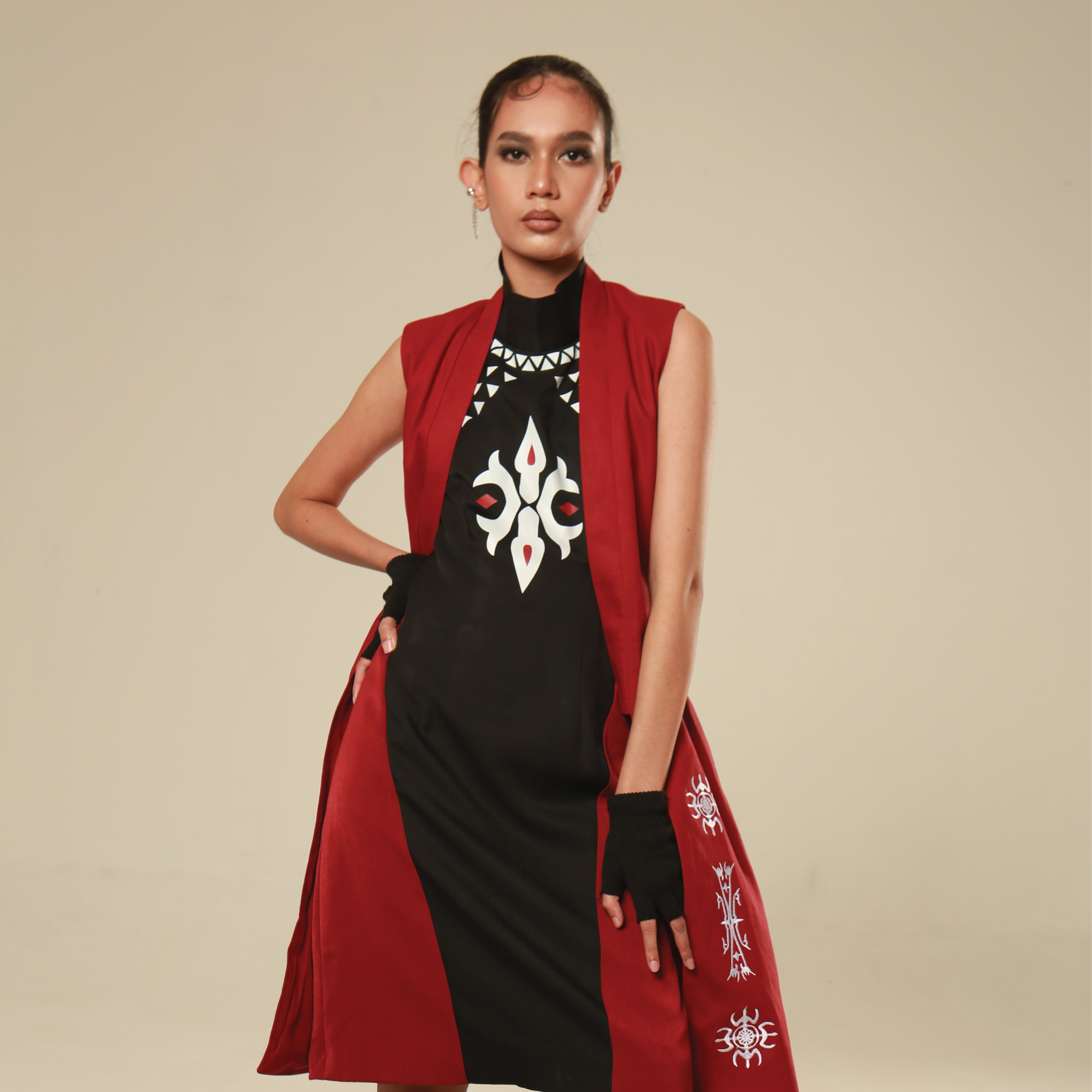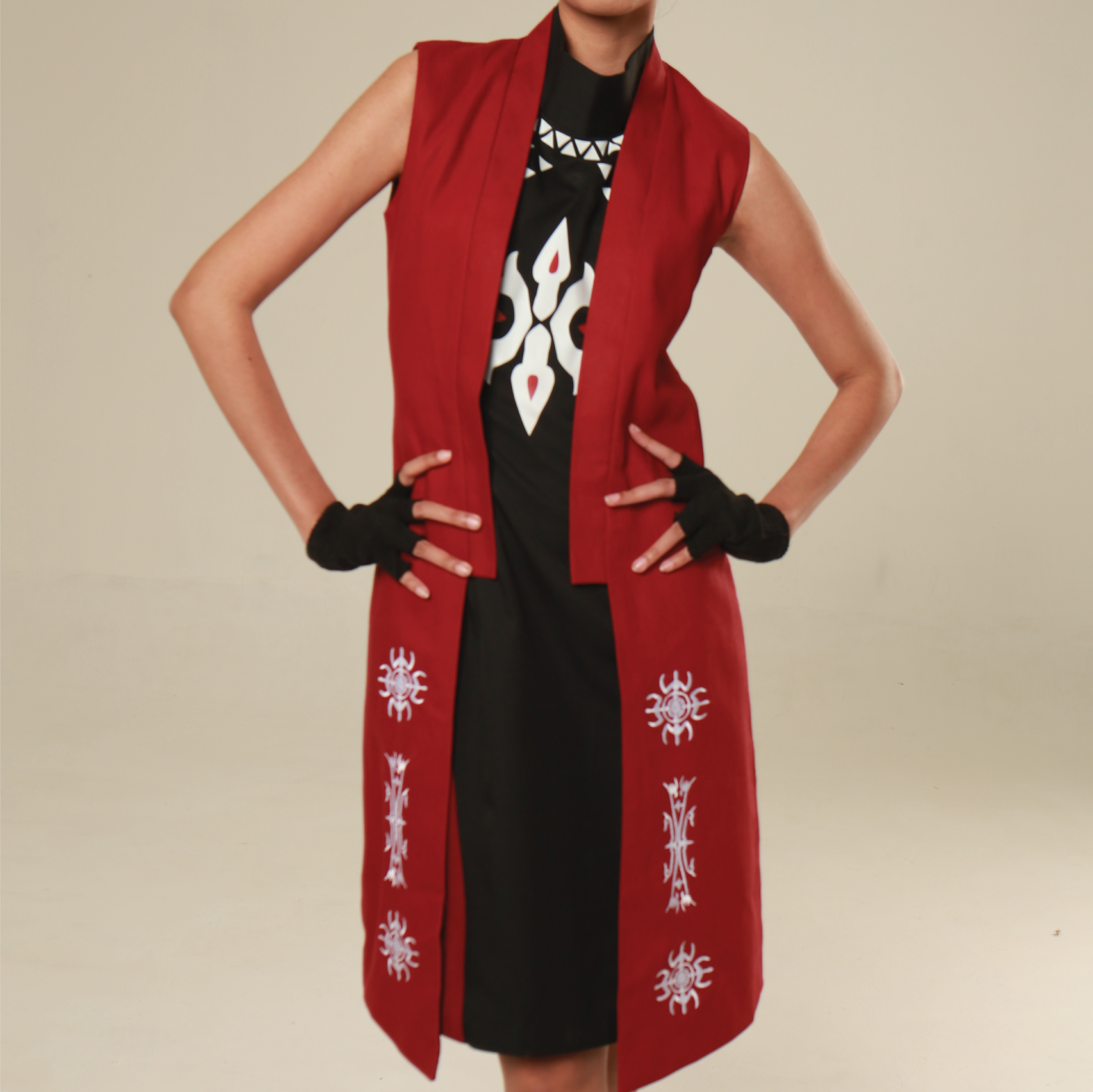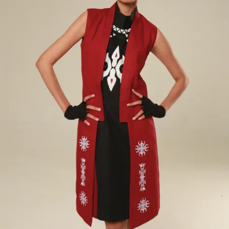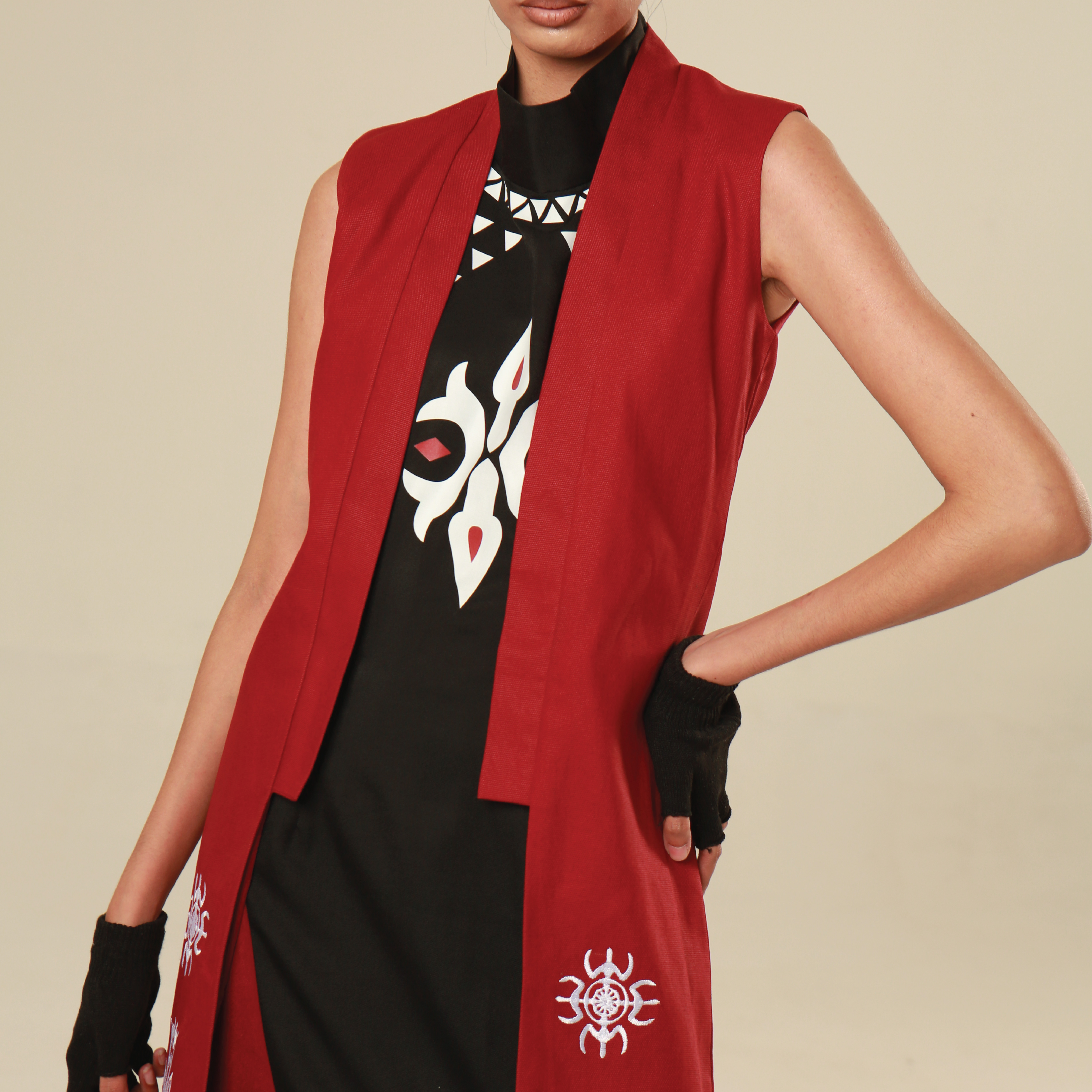 The Kahana Outer brings texture, history, and character into one refined piece. Made from sturdy maroon canvas, it features front embroidery drawn from the iconic Kakehan motif. Designed as a layering essential with cultural edge—it moves between daywear and occasion effortlessly.