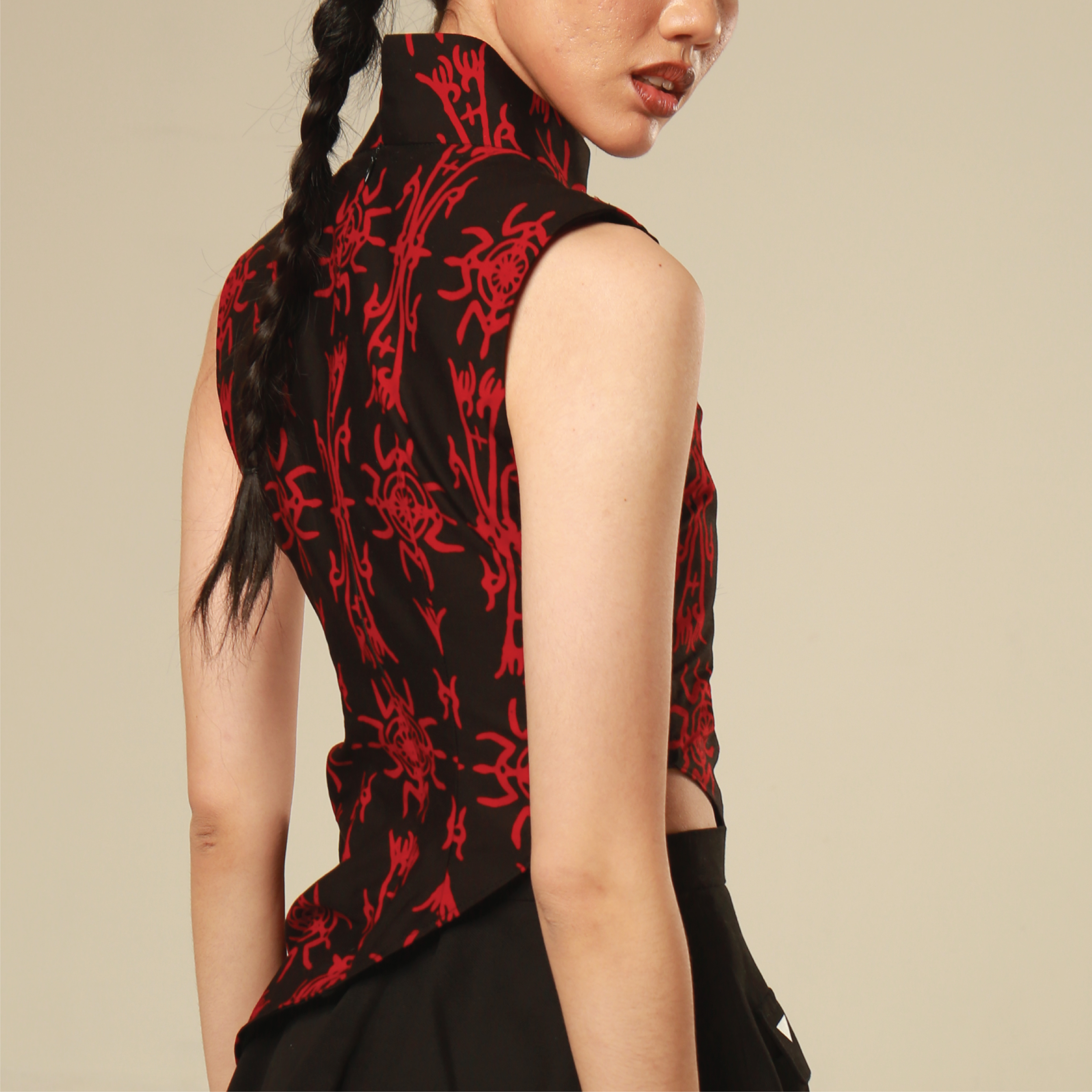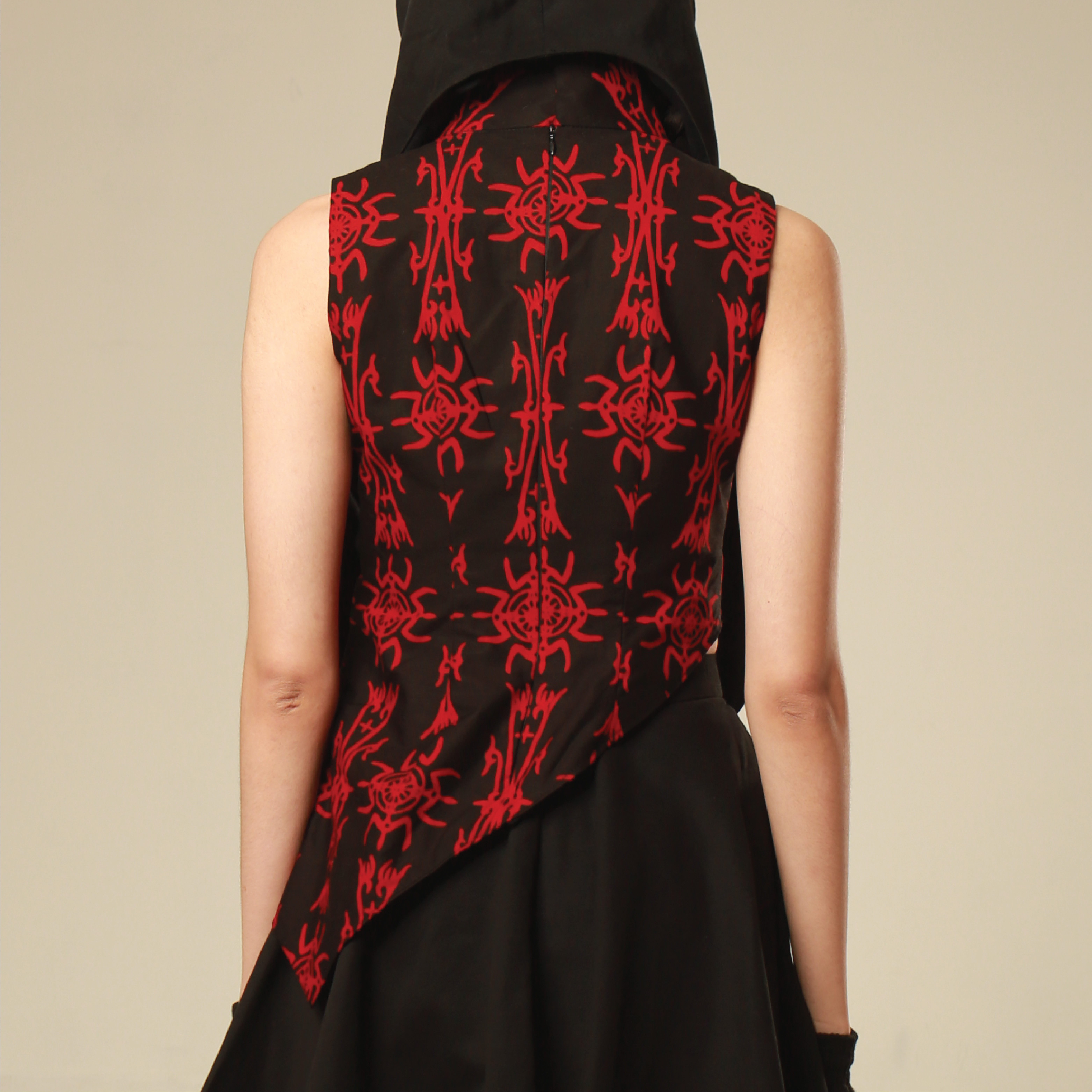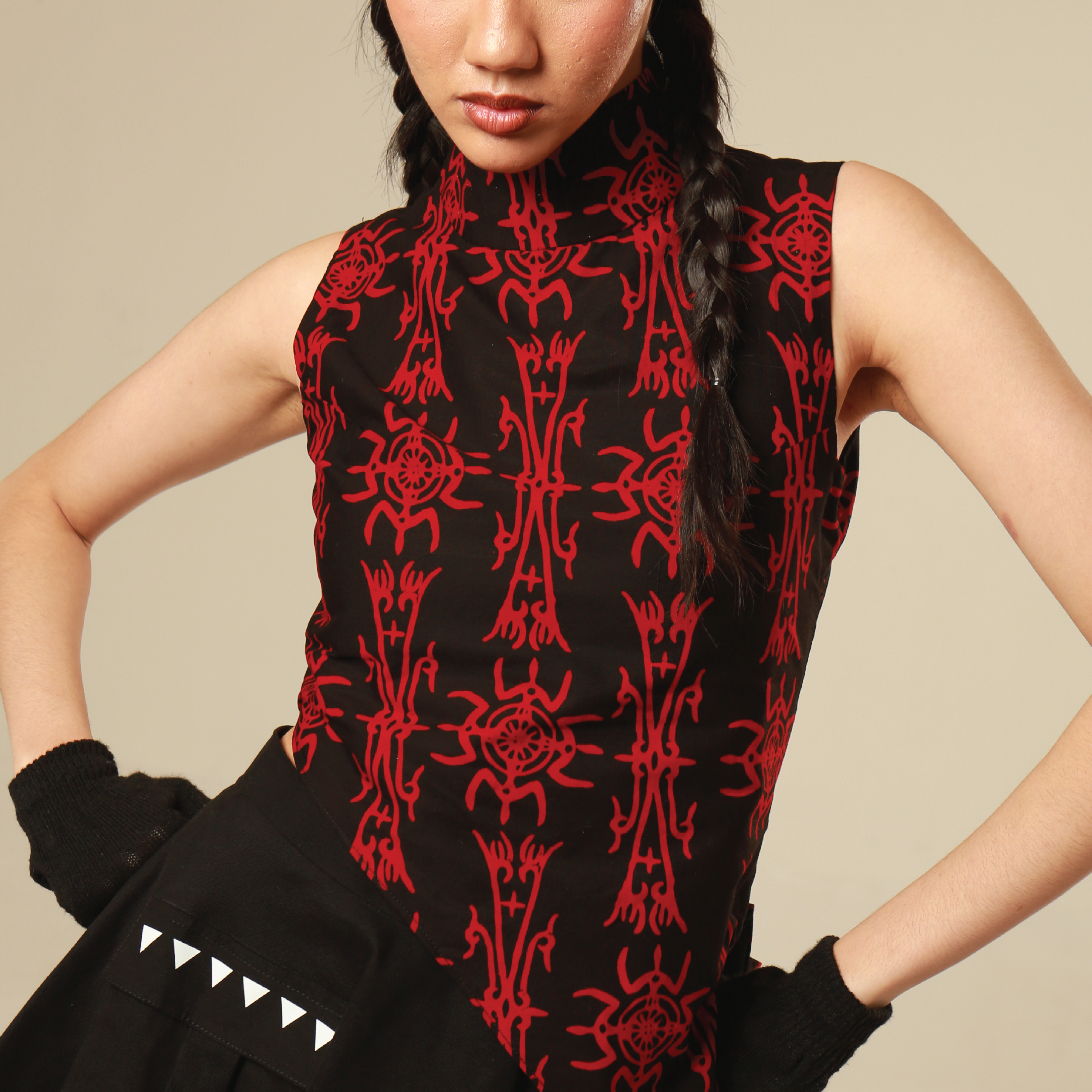 The Akara Top is a modern statement grounded in cultural roots. Crafted from Kakehan batik, a traditional motif from North Maluku, Indonesia. This top features a fitted cut that creates a bold and unique silhouette. The high neckline adds an edgy touch, blending strength with elegance. Designed to stand out with character, while honoring cultural identity in every step.
