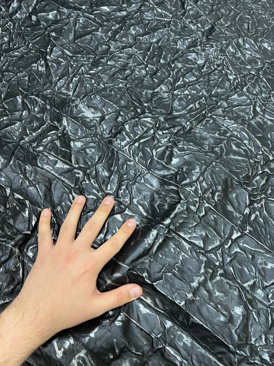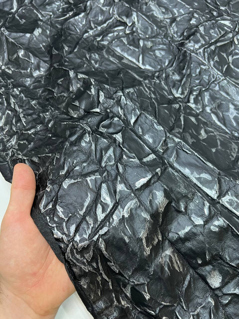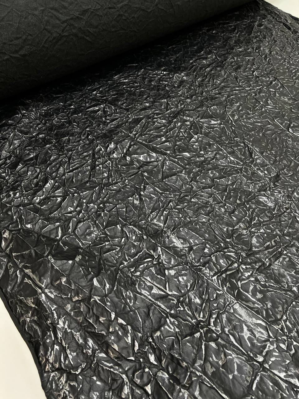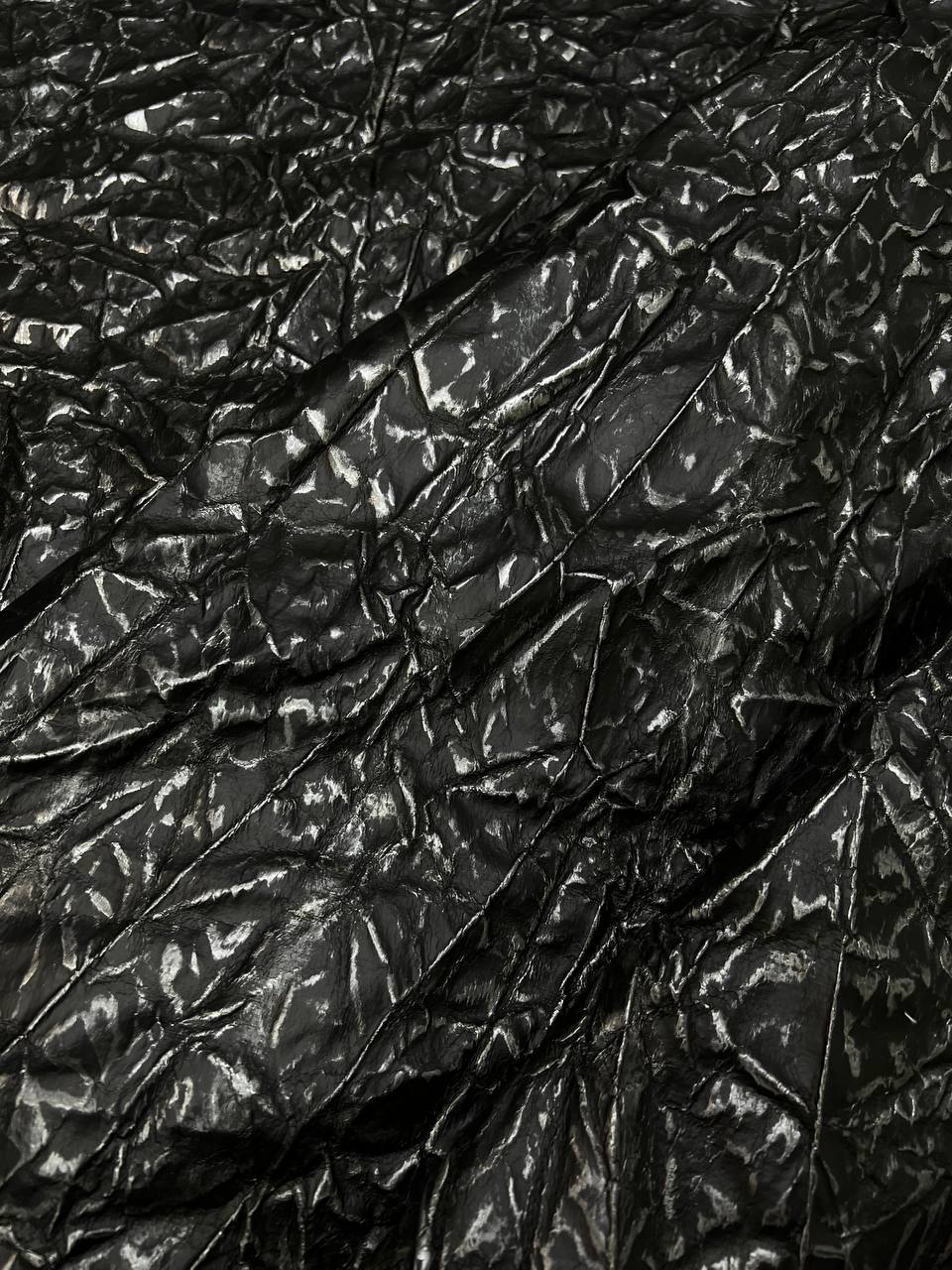 Modern and technologically advanced artificial leather. The material is made on the basis of DTY. It is a super strong polyester fiber. The surface is polyurethane coating with embossed stitched print of black ice. The material is pleasant tactile and comfortable to work with. Allows you to create any image in clothing, design projects and construction solutions