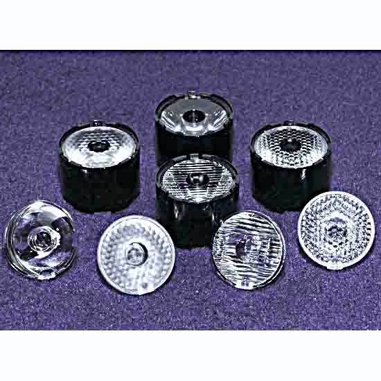 The FC lenses offer low-profile lenses specifically designed for the XLamp® 7090XR and XR-E LEDs (1) from CREE. They provide proper alignment between the LEDs and the lenses. These FC lenses reach high collection efficiency of 85% of the total flux emitted by the LEDs.