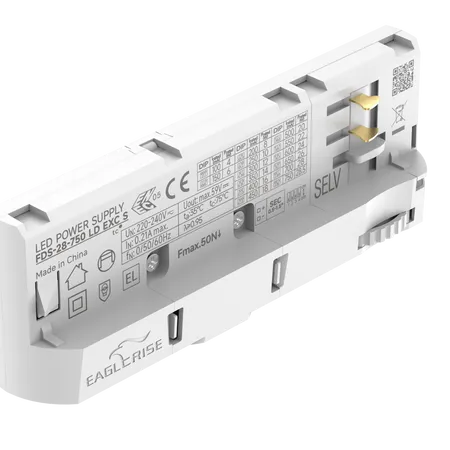 FDS-28-750 LD EXC S is a 28W constant current LED driver that operates from 198-264Vac input with 100 to 750mA output current and a forward voltage range from 10 to 40Vdc. The output current is adjustable by DIP Switch. With it’s compact dimensions from 123.1x31.1x42.2mm. It is easy to integrate in track spot light products. To ensure trouble-free operation, protection is provided against output short circuit and over Load.