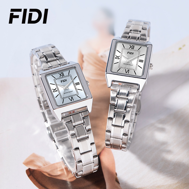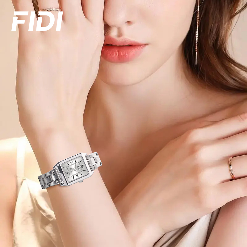 FIDI Fashion Style Elegant Small Square 3ATM Waterproof Stainless steel Quartz Watches for Women
