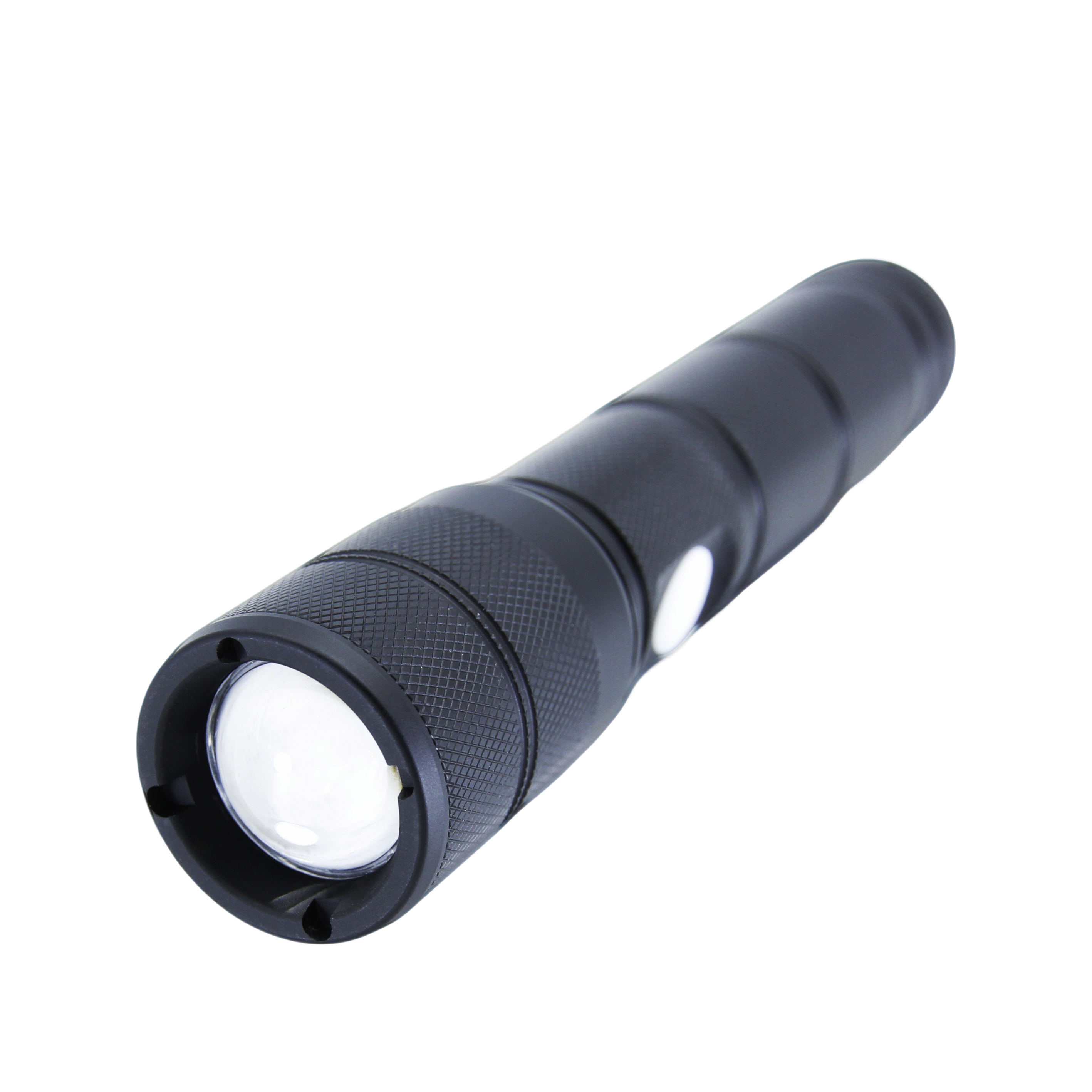 The flashlight can Zoom in to Zoom out by turning.Function: High / Low / StrobeLumens: 600 / 250 LumensRuntime: 4.5 hours on high; 8.5 hours on low