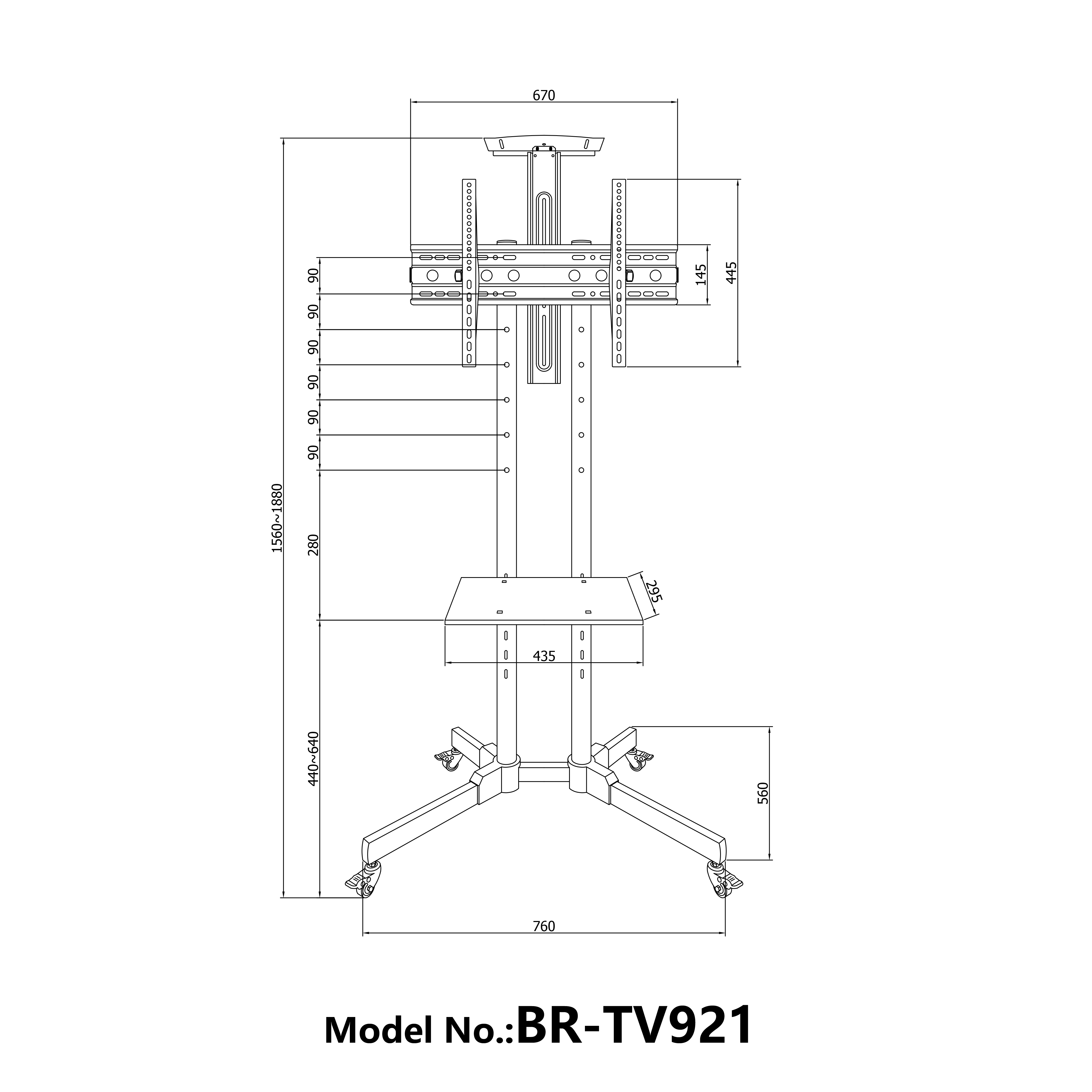 Metal Base size:890x650 mm; TV bracket: 675x445mm; Projector holder: 300x230mm;