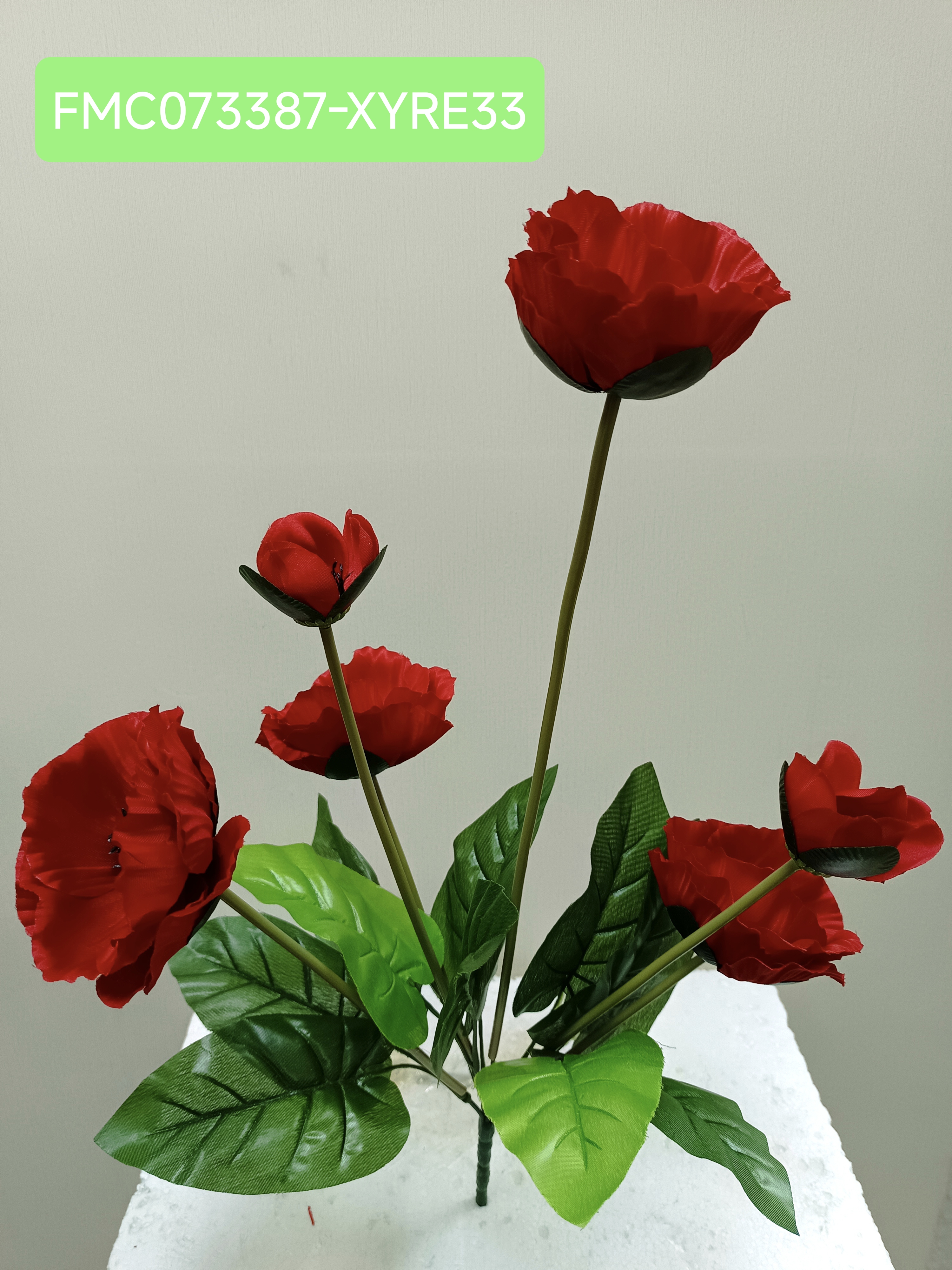 58CM SATIN POPPY BUSH X 6 W/4 FLRS & 2 BUDS