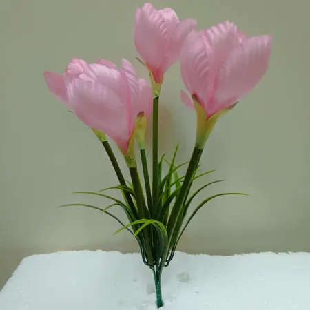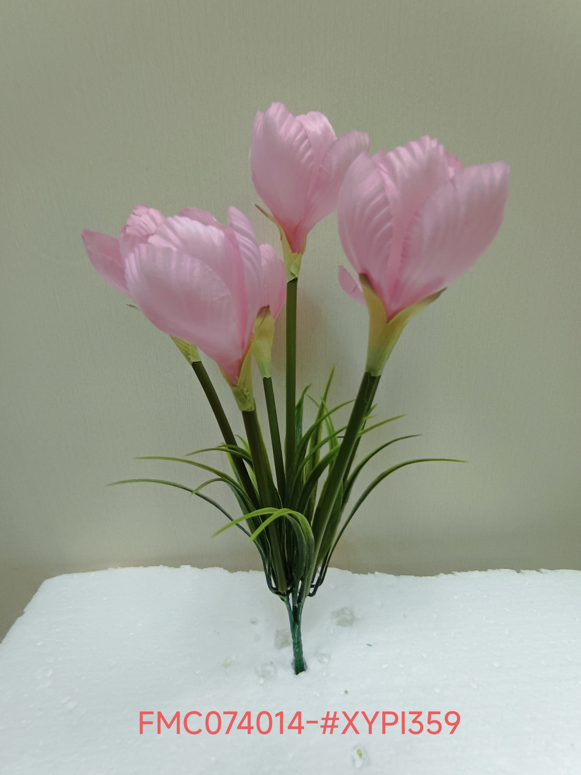36CM SATIN CROCUS BUSH X 6 W/PLASTIC GRASS