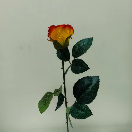 SINGLE SATIN PRINTING ROSE BUD W/3 SET LVS (THINER STEM) PACKING: 6DOZ / 60DOZ / 7.5' COLOR: #T136