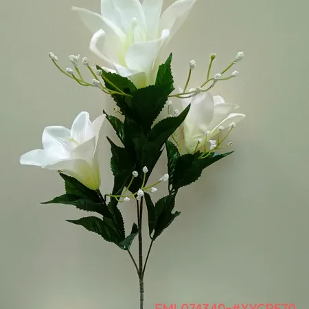 78CM SATIN LILY SPRAY X 4 FLRS W/GYPSO