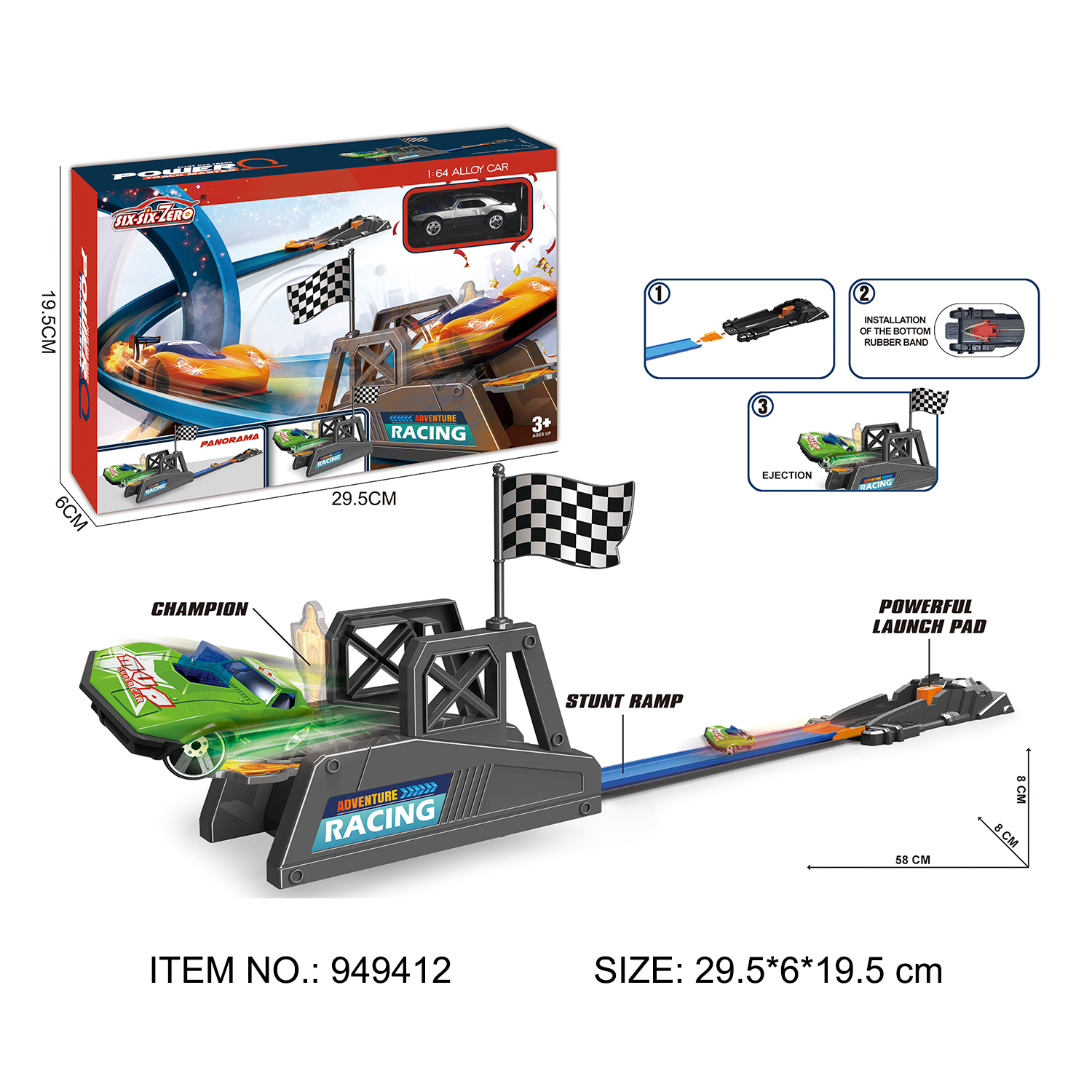 FREE WHEEL METAL CAR WITH TRACKING ORBIT PLAYSET
