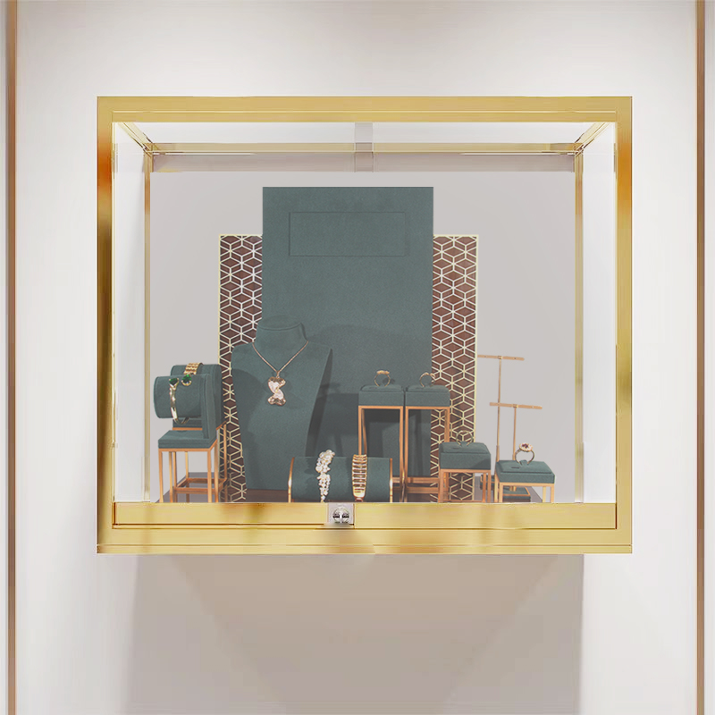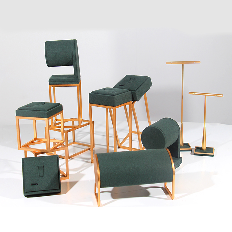 FSD New Design Metal Luxury Jewelry Display Set Microfiber Bust and Stand with Base and Background for Window Cabinet showcase