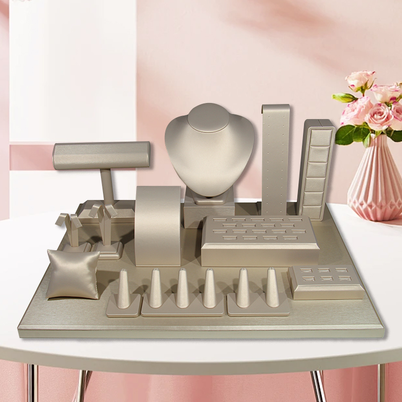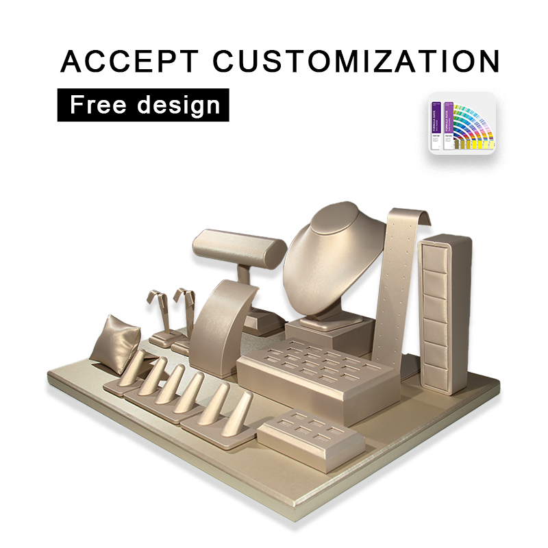 FSD Newly Design Whole Set Jewelry Display Stand Customize Gold Color PU Leather Display for Jewelry Window Counter showcase