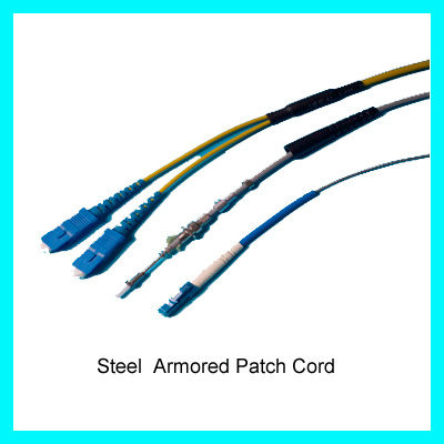 By adopting the processing technic of indoor soft optical fiber cable and fine workmanship for producing fiber optic patch cord, these special fiber optical patch cords are fully protected by steel armor outside the tight tube of 0.9mm PVC. They have high mechanic performance, reliable optical performance and leading anti-ultraviolet radiation function. These steel armored fiber optical patch cords apply to the fields of various data communication, outdoor emergency, buildings without protective cabling. And presently advocated cabling connection of FTTH etc.