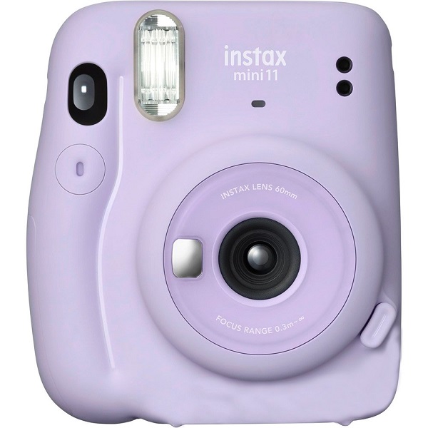 A fresh take on a beloved instant film camera, the sky blue FUJIFILM INSTAX MINI 11 is a sleek, fun, and stylish camera capable of producing instant credit card-sized prints. This model has been updated with an automatic exposure function that no longer requires manual adjustment for different lighting conditions, and the built-in flash benefits working in low-light conditions. It has also incorporated its close-up shooting capabilities into the 60mm f/12.7 lens design for seamless shooting from 11.8" to infinity. Rather than needing to use a lens attachment, this integral design means you just need to extend the lens barrel to the Selfie Mode position for close focusing from 11.8" to 19.7", and a built-in mirror on the front of the lens allows for perfectly composed selfies. The slim camera design also features a new debossed INSTAX logo over the film door, a transparent ring design over the lens, and the classic window viewfinder, and it includes two fun accessory shutter button covers.