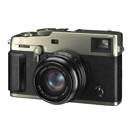 digital camera designed with a film ethos, the FUJIFILM X-Pro3 is a unique mirrorless camera characterized by its distinct viewfinder design, a hidden LCD screen, and its stylish, rangefinder-inspired design with a dura silver finish. In terms of imaging, the X-Pro3 features the APS-C-format 26.1MP X-Trans CMOS 4 sensor along with the X-Processor 4, which enables high-resolution stills shooting and DCI/UHD 4K video recording. The sensor and processor also enable an ISO 160-12800 sensitivity range for working in a variety of lighting conditions.