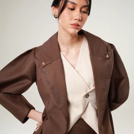 FEBBY VIOLA ANATASYAFV/SS/PLTDCT/BRThis semi-wool pleated coat features an overlapping lapel with a button closure and a distinct sleeve structure.