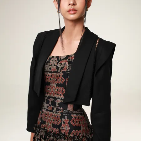 FEBBY VIOLA ANATASYAFV/SS/FGTNGCRBLZR/BLKLinen cropped blazer with front and back fagoting details, featuring statement sleeves