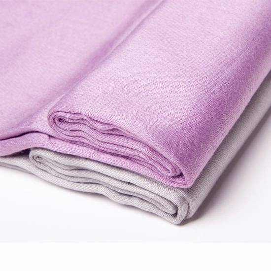 This fabric is made of high quality material. It comes in soft and romantic purple or gray color. The simple design and smooth and light texture make it perfect for finishing clothing accessories like scarves.