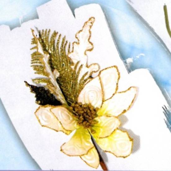 These lovely warm flowers are made of dazzling fabric with a silky touch. Each white flower comes with matching leaves and decorations in golden color. These are the perfect flowers to brighten up any corner.