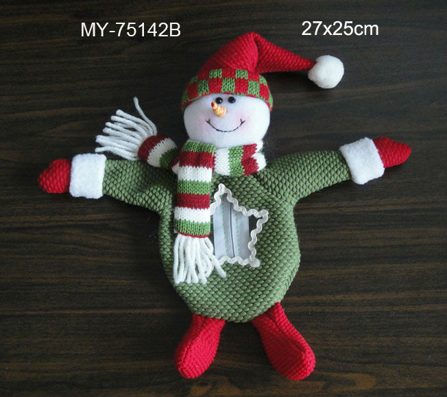 Polyester Snowman Bag 27*25cm, Snowman with hat & scarf, stomach is a bag, could put the candy, chocolate or small toy in it. the small zipper on the back. It's cute & lovely.