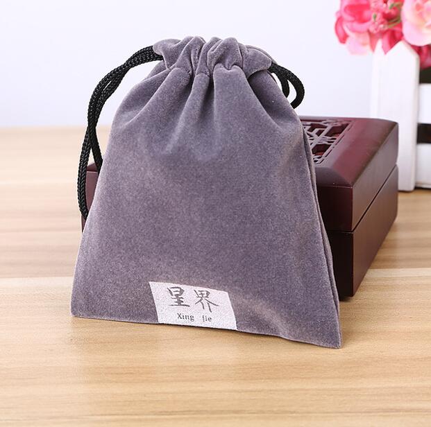 1. Material: 1C velvet material + silk printing logo + drawstring