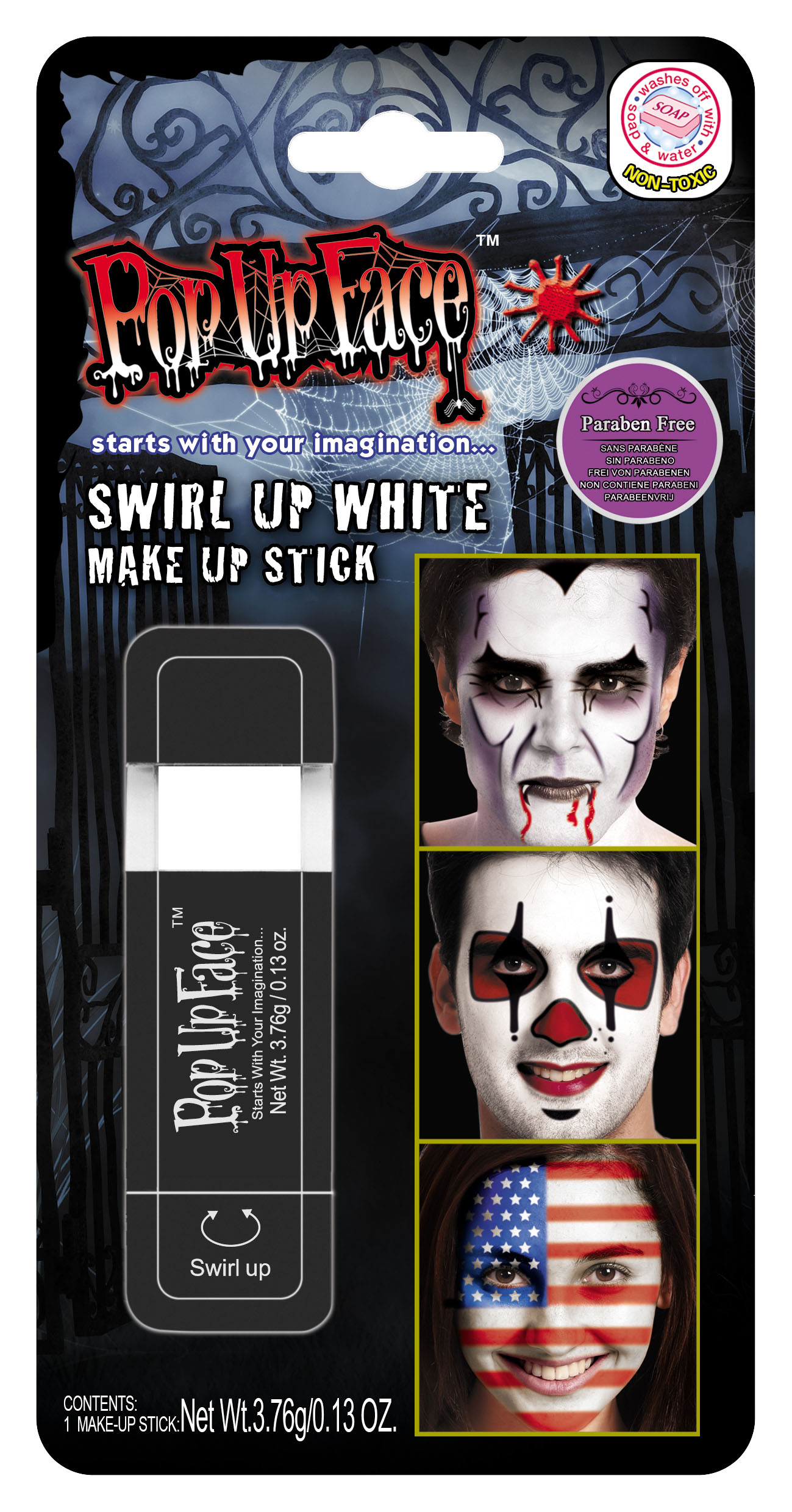 This swirl up makeup stick offers a simple and quick way for applying makeup. It features an oil based face crayon in a swirl up case and is easy to carry everywhere. The makeup stick is perfect for Halloween use and is great for creating the looks of vampires, clowns and more.