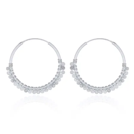 Faceted Rainbow Moonstone Sterling Silver Hoop Earrings