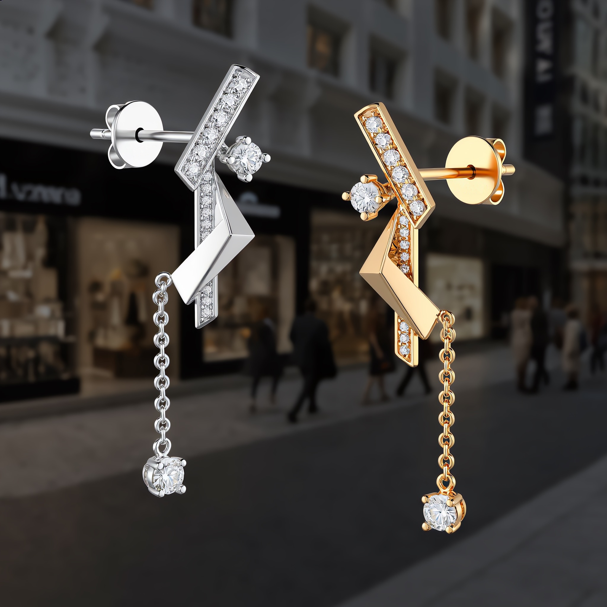 Based on the core spirit of YOUCAN brand's "empowering self-expression" and combined with the consumption needs of young women pursuing individuality, fashion, and delicacy, these are a pair of 18K gold inlaid cultivated diamond earrings called "Faceted Cadence". The design concept focuses on "multi-faceted self, shining freely",
