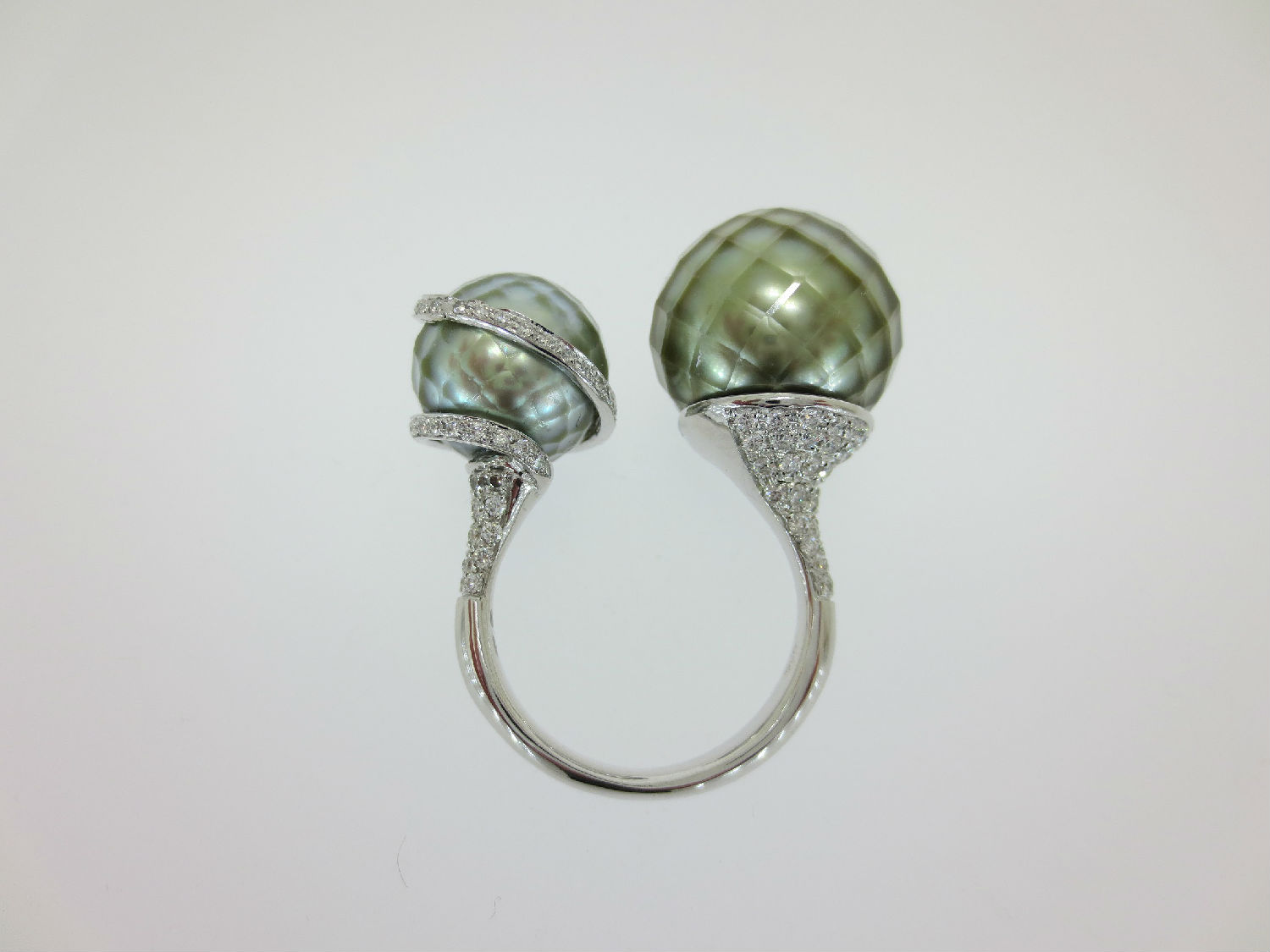 • 2 Facetted Pearls, 212 Diamonds 0.76ct set in 18K Gold