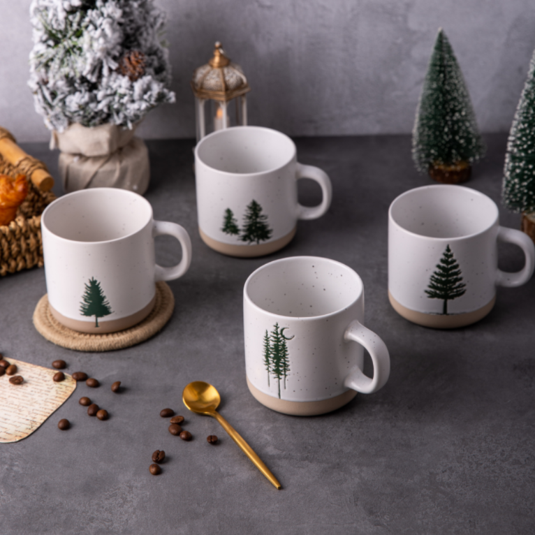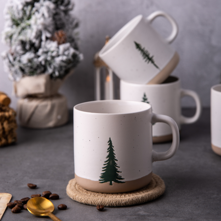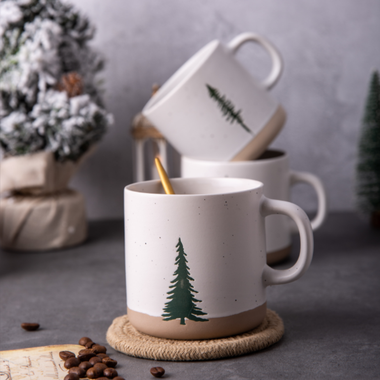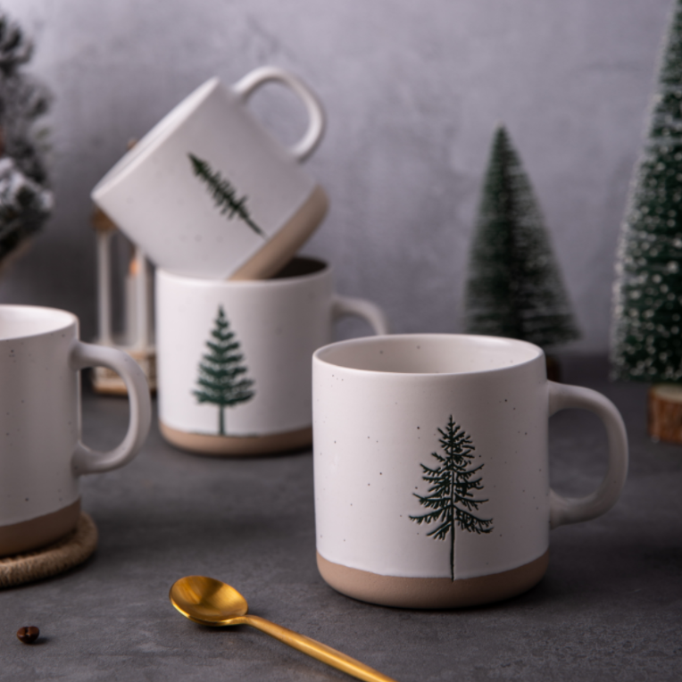 Factory Direct Sale Two Tone Ceramic Mug Xmas Design Popular Stoneware Coffee Mugs