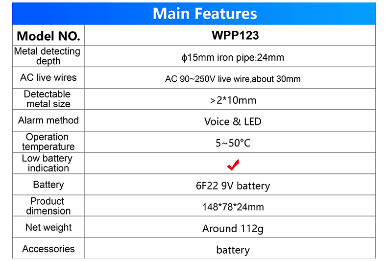 Factory Direct Sales High Sensitivity Hand-held Metal Detector WPP123
