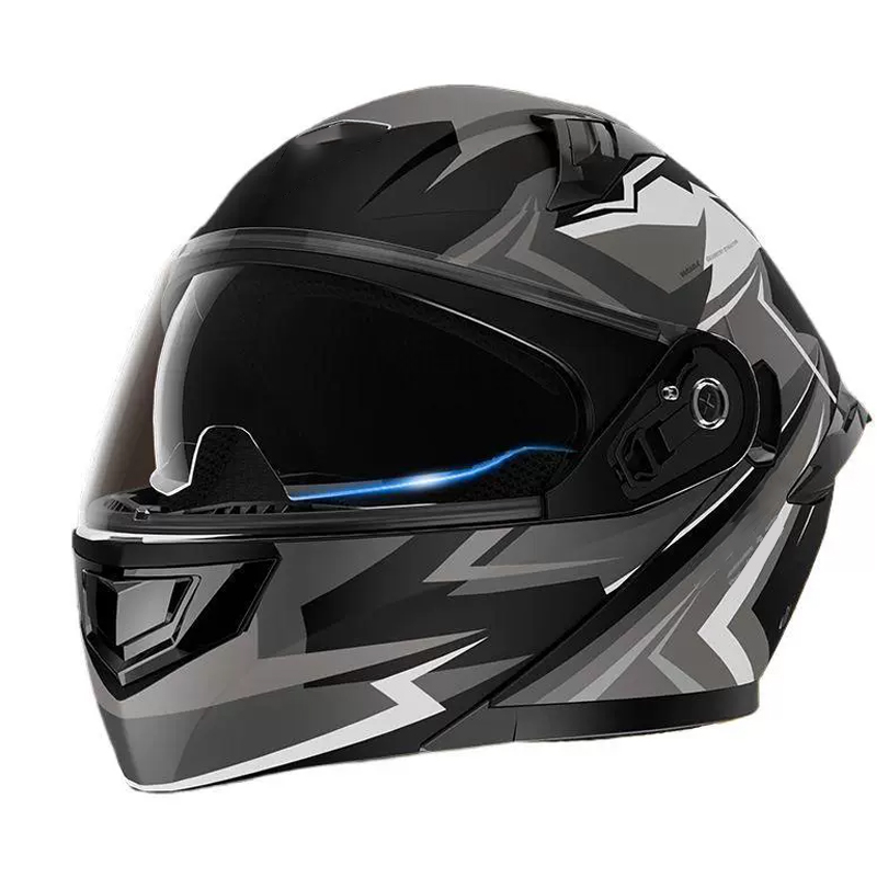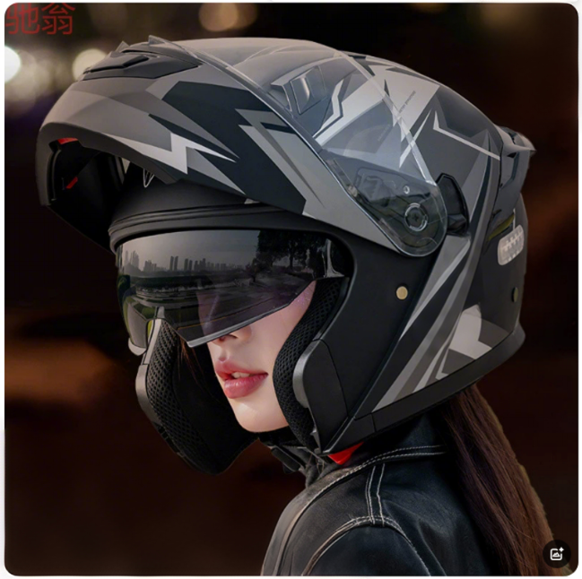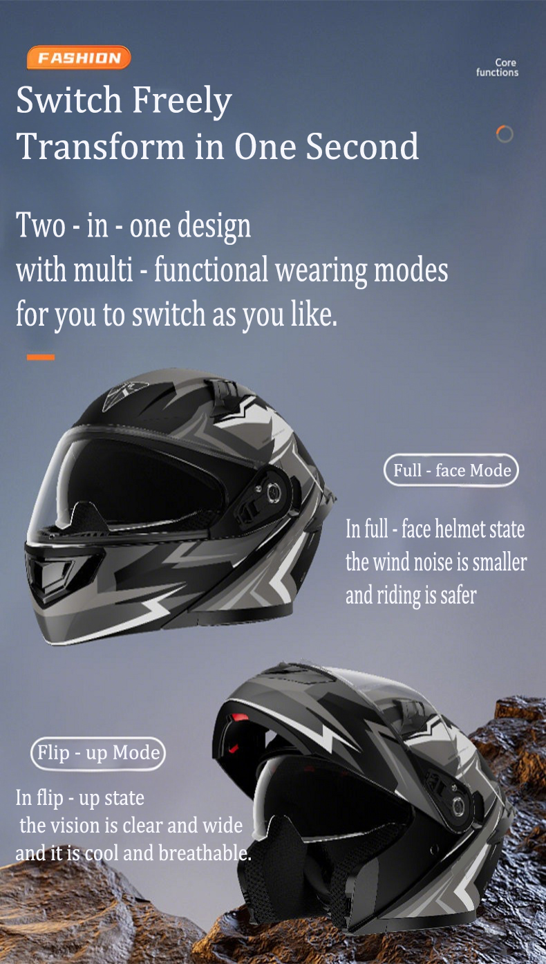 Riders, still looking for a helmet that combines safety and convenience? This flip - up full - face helmet is definitely your cup of tea! With a full - face design, it provides 360° all - around protection for your head, allowing you to ride with peace of mind even on complex road conditions. The unique flip - up structure enables you to communicate and drink easily during breaks in your ride, without the need to take it off and put it on frequently. The high - definition anti - fog lens effectively resists wind, rain, and glare, keeping your vision clear at all times. Made of sturdy and durable materials, it features a lightweight design, so you won't feel burdened even when wearing it for a long time.