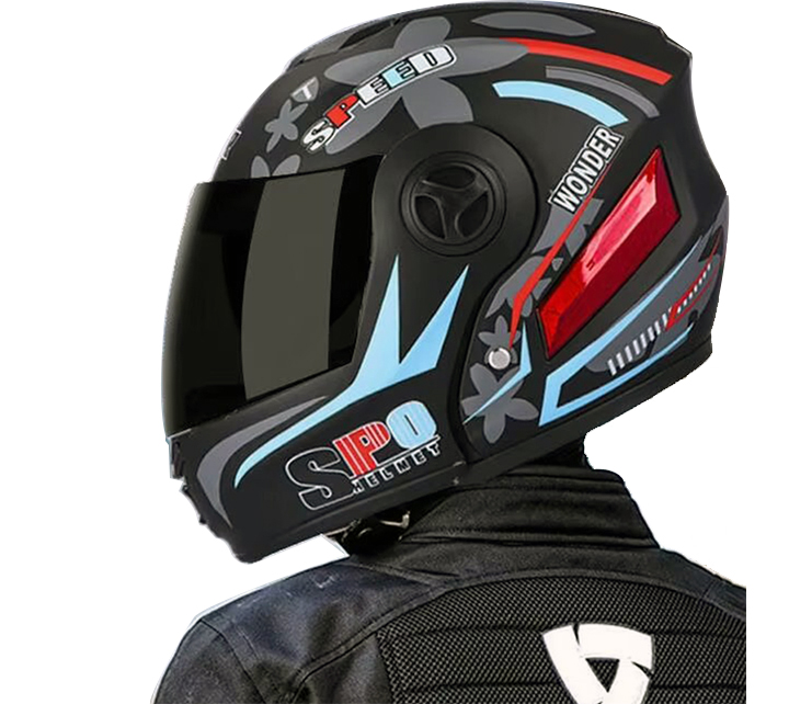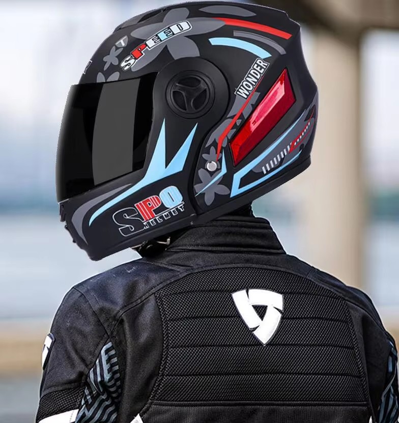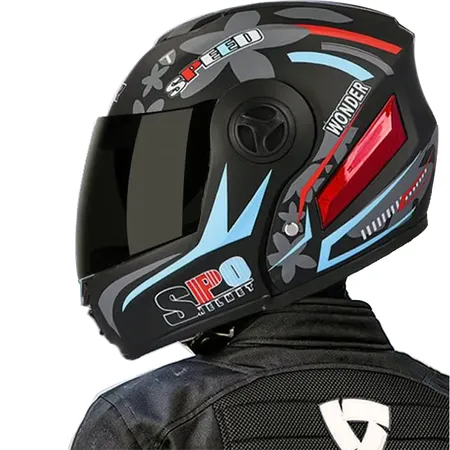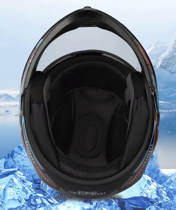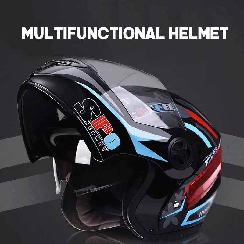 Riders, still looking for a helmet that combines safety and convenience? This flip - up full - face helmet is definitely your cup of tea! With a full - face design, it provides 360° all - around protection for your head, allowing you to ride with peace of mind even on complex road conditions. The unique flip - up structure enables you to communicate and drink easily during breaks in your ride, without the need to take it off and put it on frequently. The high - definition anti - fog lens effectively resists wind, rain, and glare, keeping your vision clear at all times. Made of sturdy and durable materials, it features a lightweight design, so you won't feel burdened even when wearing it for a long time.