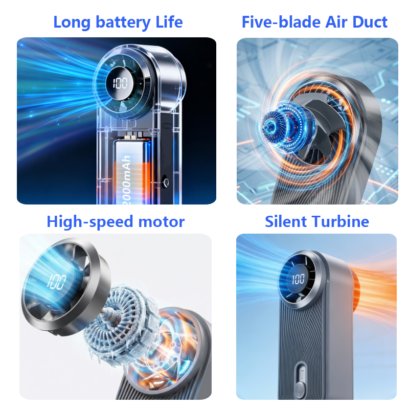 Factory Slide Mini Turbo Scroll Fan Brushless Motor Low Noise High-Speed Handheld Portable Rechargeable Jet Air Conditioner Fan