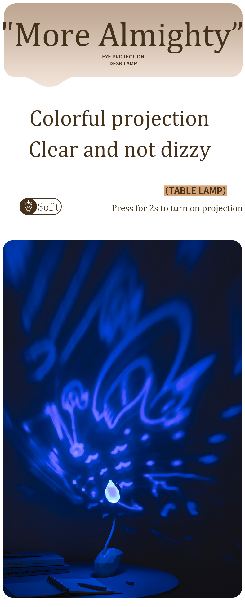 Factory rechargeable LED Swan Table Lamps 3 Level Flexible Table Lamp Usb projection light Reading Book Light With Holder