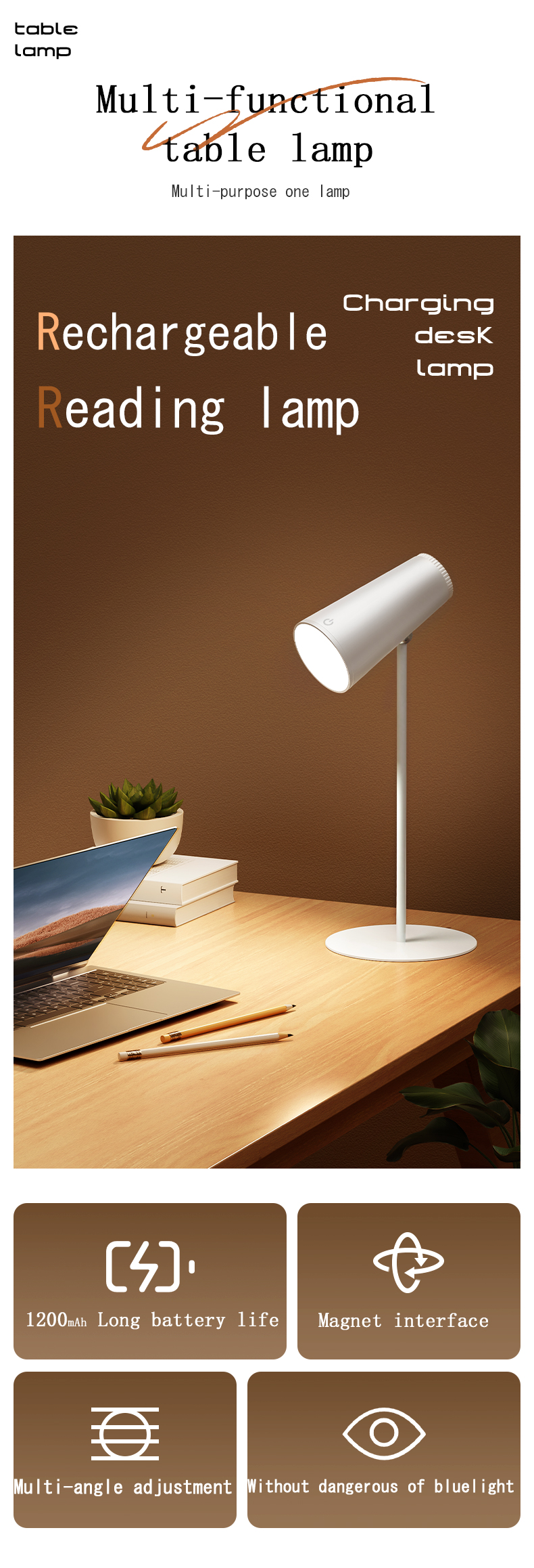 Factory wholesale 1200mah Usb Removable Portable led cordless new lamp Wireless desk light 2 in 1 flashlight touch table lamp