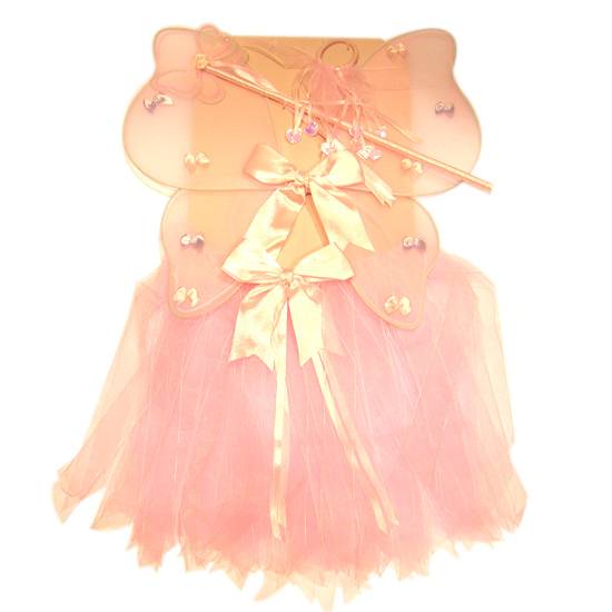 Dress your beloved girls for a splash of fantasy with this fancy pink fairy costume. Wear this to parties and win attraction. The fairy costume comes with a pair of butterfly wings mesh with tiny butterfuly knots and a wand of the same theme.