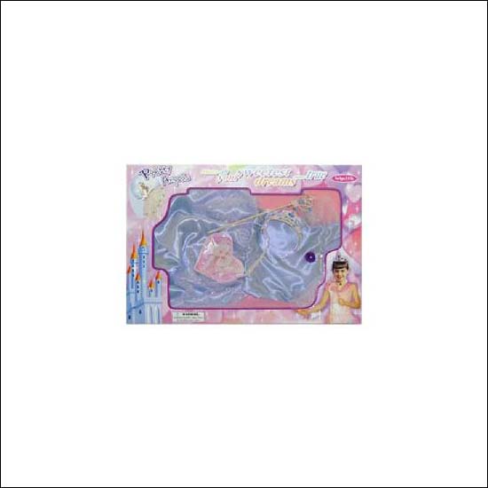 Shown here is a set of fairy costume in princess dress style. This fairy costume set contains a wand, a handbag, a dress and a crown, and they are all exquisitely crafted to give an elegant princess-like style. This costume set in shimmering light blue color let you dress your little daughter like a princess in any parties or special occasions.