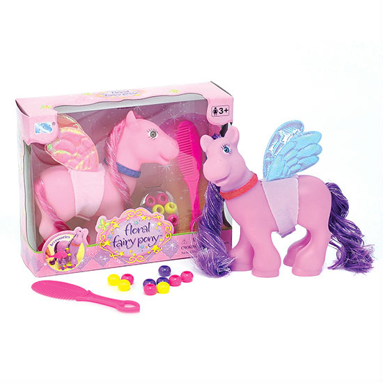 This appealing toy set consists of a 5.5" vinyl pony, as well as colorful beads and a comb. The lovable fairy pony comes with a pair of glossy wings and colored rooted hair. Kids will have endless fun accessorizing the pony’s hair.