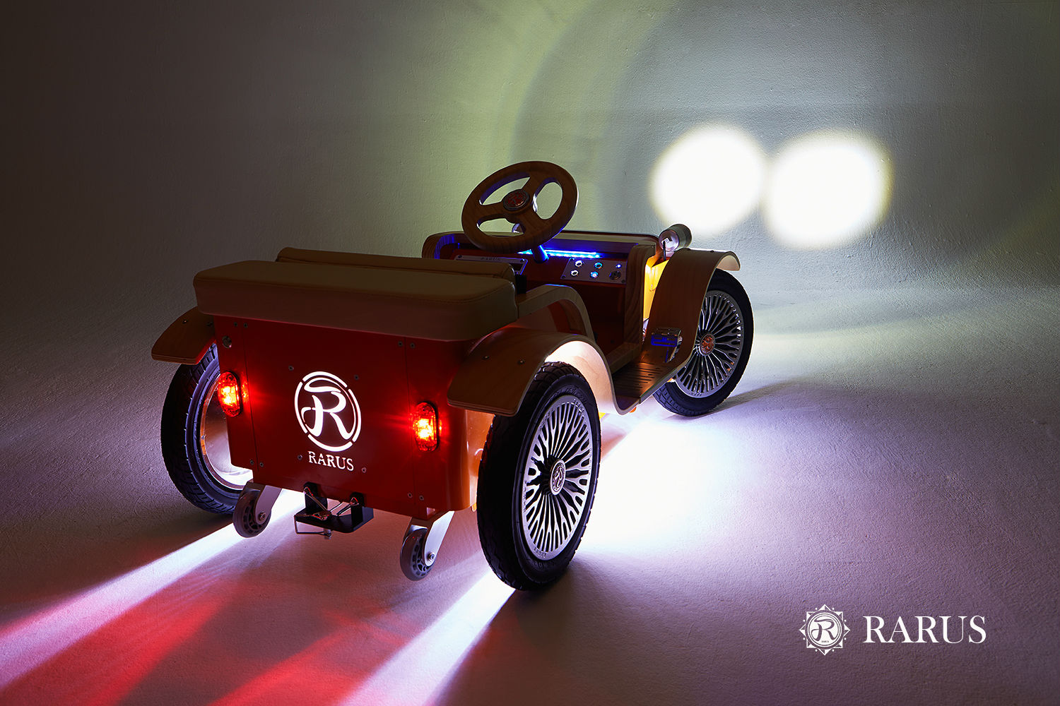 This family's electric ride-on car 'RARUS' is a custom-made electric vehicle, a product conceived and produced from dedicated craftsmanship. 'RARUS' is a brand that originated from the philosophy that everyone in a family, parents and kids alike, must enjoy it. Durable and sturdy, allowing parents and children to comfortably ride together. 'RARUS' is a family car that delivers fun and happiness to kids and adults alike.