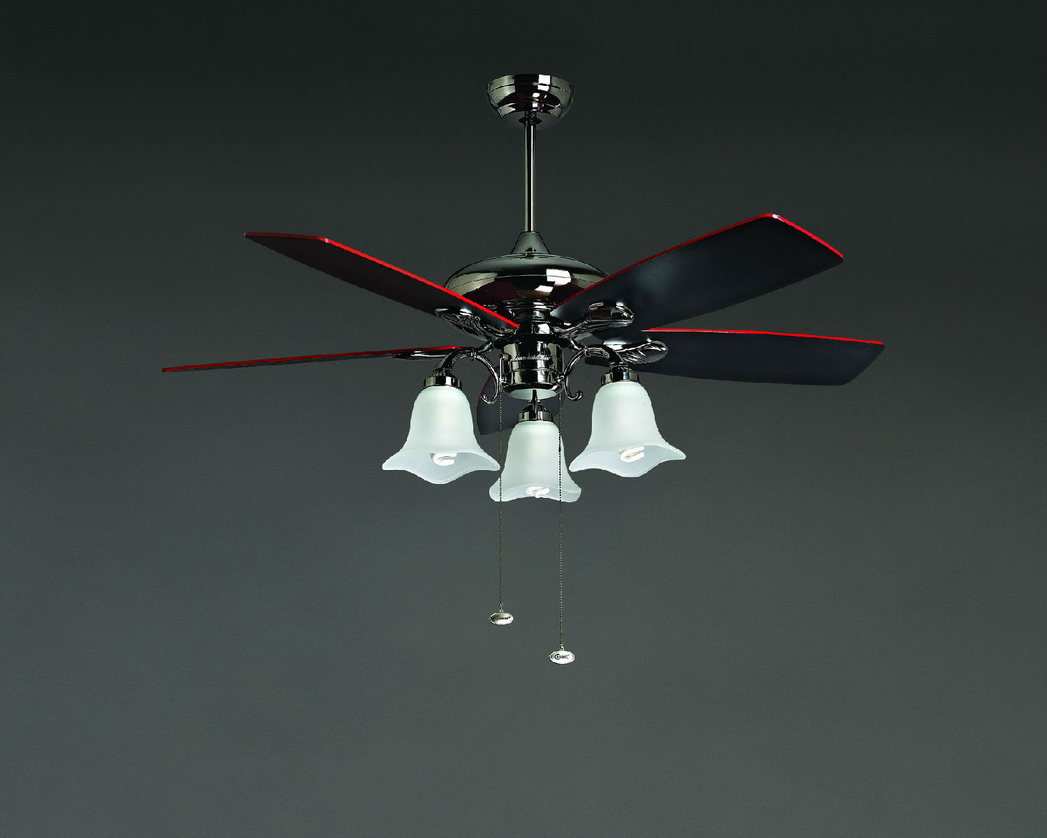 This stylish fan lamp features a brown-colored construction with 5 fan blades. It comes with 3 flower-like lampshades, emitting soft and warm light glows. Decorate your home with this unique yet functional fan lamp.