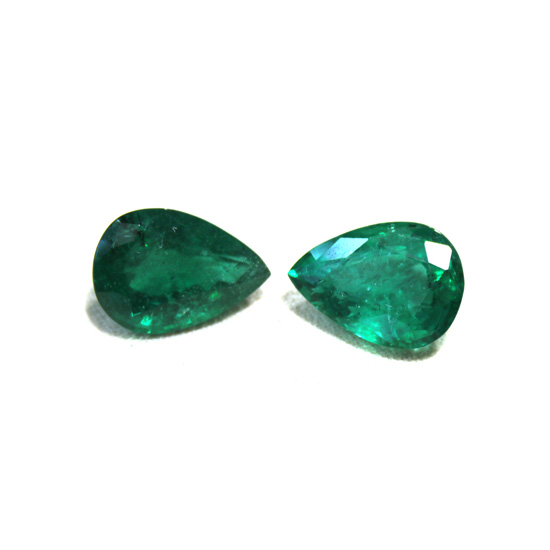 This pair of fancy diamonds shows a charming green color. With delicate facets, the diamonds flickers under light. The stone is well-polished for enhanced shine.