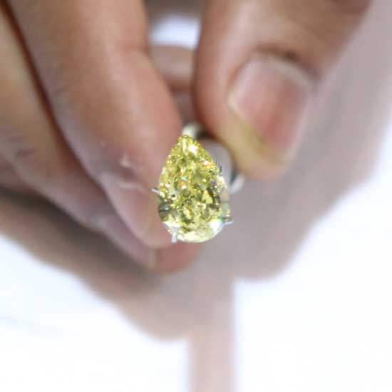 This is a brilliant fancy diamond in a natural yellow color. This fancy diamond is delicately polished and smoothened to present outstanding beauty and shine. The precise pear cut makes it stand out from other types of diamonds.