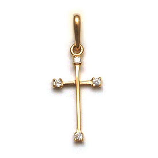 Featured is a 9K, 10K, 14K or 18K gold pendant with cubic zirconia. The pendant is designed as a cross motif with a loop for convenient use. The innovative design is surely attractive to you.