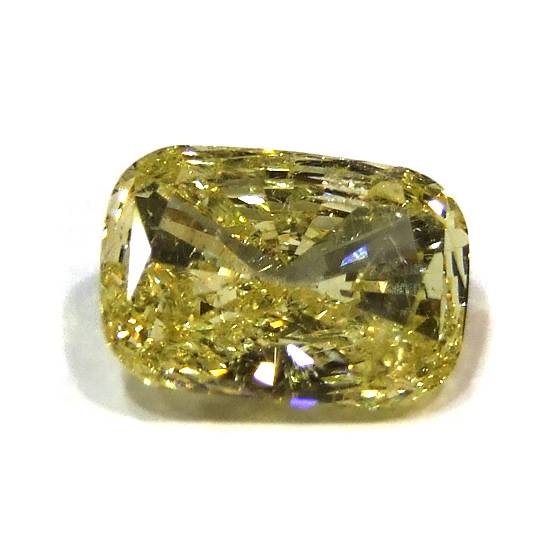 This cushion-shaped yellow diamond presents a very sparkling image. Its faceted surface enables it to reflect the maximal amount of lights, which explains why it looks so shiny. The yellow colour looks similar to gold, which makes the diamond more elegant-looking.